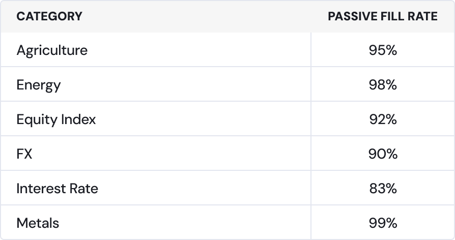 As we optimize algo performance, we examine individual fills across contracts, times of day, volatility regimes, and urgencies. This painstaking analysis helps us derive the right strategies for your flow.